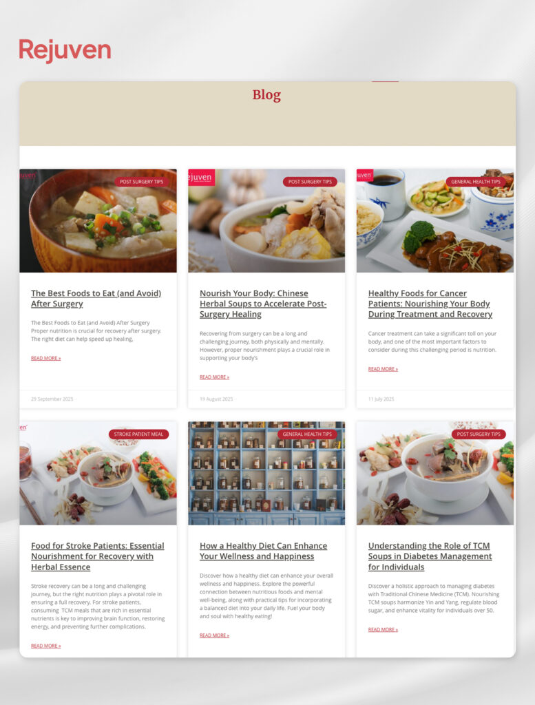 Enhanced Rejuven’s organic reach through wellness-centered, SEO-driven blog posts designed to appeal to health-conscious audiences. This content approach helped position the brand more effectively for nutrition, healthy meal prep, and diet catering search trends.