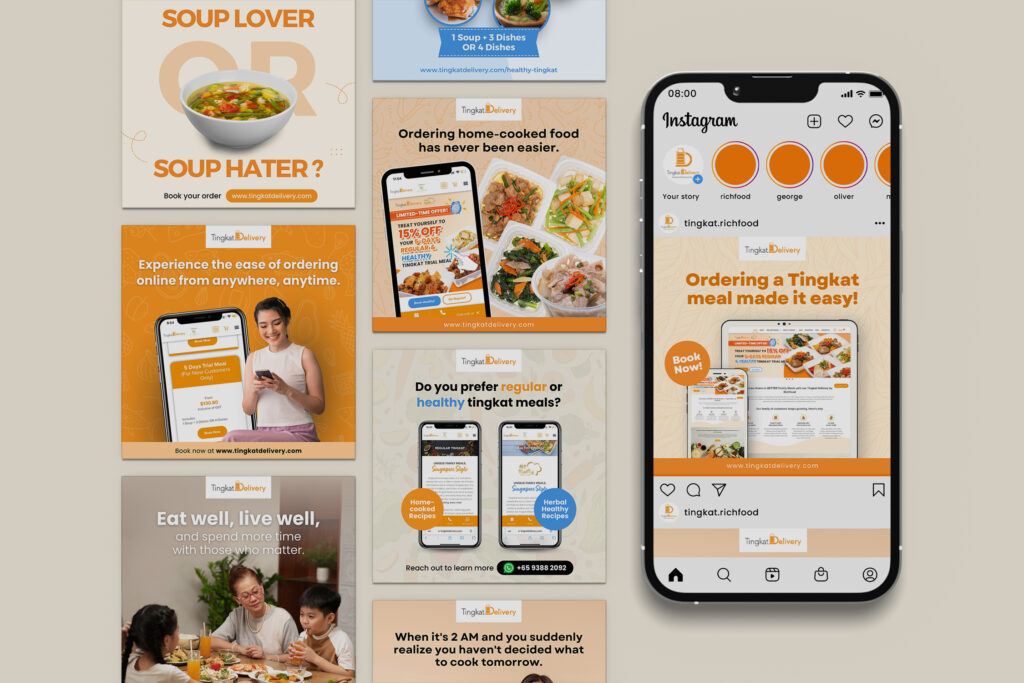 Since the end of the MCO, Tingkat Delivery has been facing challenges with the rise of more competitors entering the same business. The main challenge we encounter is ensuring that the people of Singapore continue to remember Tingkat Delivery as the solution to their daily meal needs. With increasing options available in the market, it is crucial for TK to stand out and remain top of mind among customers. To achieve this, the designs we produce must not only be visually appealing but also memorable, helping to strengthen Tingkat Delivery’s identity and position as a trusted brand for convenient and reliable meals.