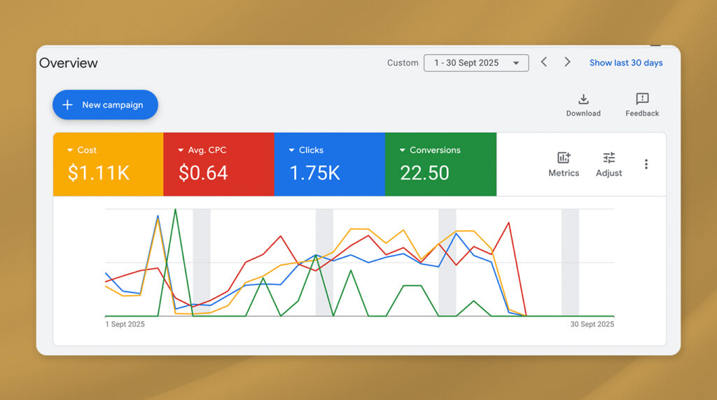 Optimized Rejuven’s campaigns to balance spend efficiency and conversion consistency across Search and PMAX placements.