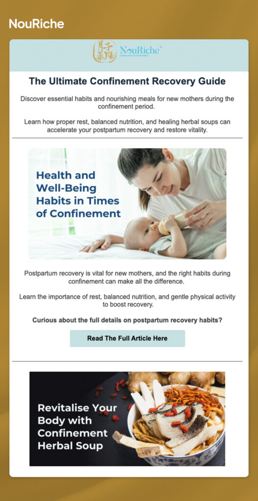 Nouriche’s premium audience expects refined communication, making basic promotional emails insufficient. Previous email content did not fully convey the luxury experience or differentiate the brand from competitors.
