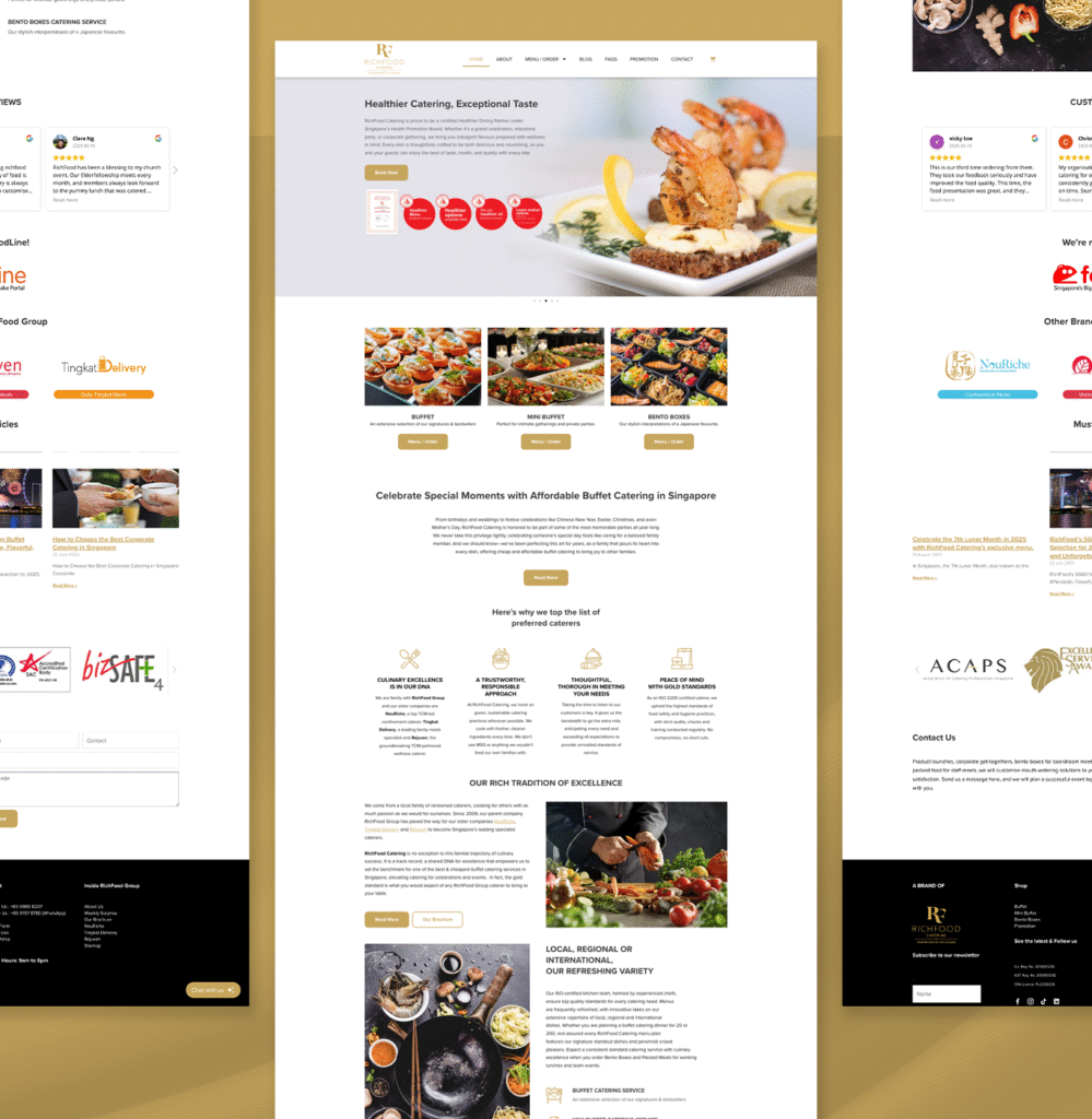 RichFood Group is a family-run catering business in Singapore, known for bringing joy to every celebration with their tagline: “Celebrate Special Moments with Affordable Buffet Catering in Singapore.” From birthdays and weddings to festive holidays, RichFood delivers buffet, mini buffet, and bento sets designed for every occasion. Our task was to create a modern eCommerce website that translates their extensive menu options into an effortless online ordering experience. The platform needed to accommodate large-scale catering orders with dish-by-dish customization, minimum pax requirements, and delivery zone logic—ensuring customers could confidently plan their events with clarity and convenience.