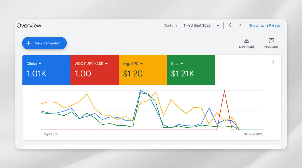 Adjusted bidding strategy to prioritize high-performing audiences and keywords. Implemented ad schedule optimization and refreshed creatives for post-season engagement.