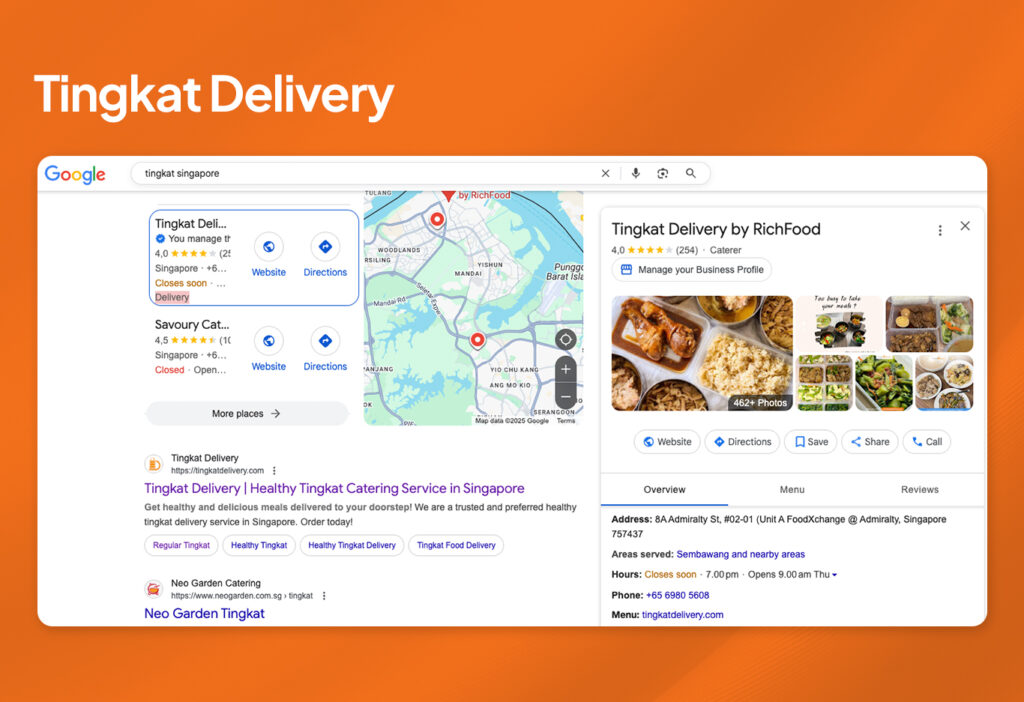 Optimized Tingkat Delivery’s Google Business Profile to increase visibility for daily meal delivery and tingkat subscription searches. The focus was on enhancing customer engagement and improving local ranking performance.