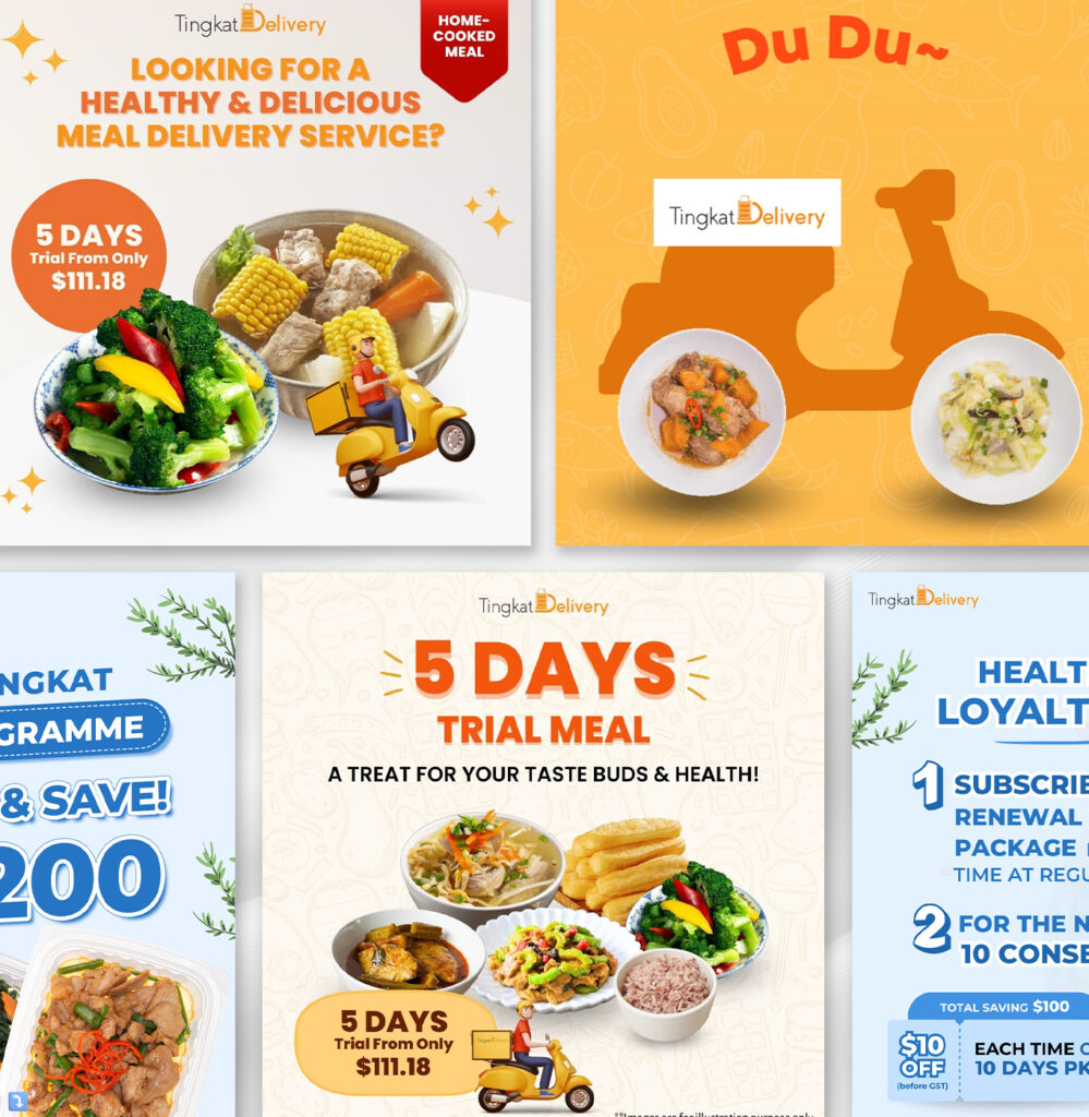 Since the end of the MCO, Tingkat Delivery has been facing challenges with the rise of more competitors entering the same business. The main challenge we encounter is ensuring that the people of Singapore continue to remember Tingkat Delivery as the solution to their daily meal needs. With increasing options available in the market, it is crucial for TK to stand out and remain top of mind among customers. To achieve this, the designs we produce must not only be visually appealing but also memorable, helping to strengthen Tingkat Delivery’s identity and position as a trusted brand for convenient and reliable meals.